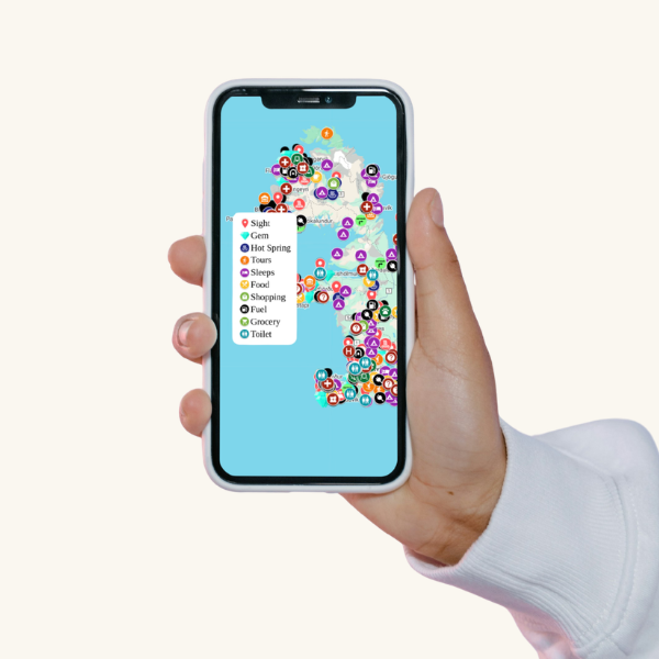 Plus, it includes all the must-know places like grocery stores, rest areas, toilets… everything you need to know for a smooth trip, especially in such a remote location.